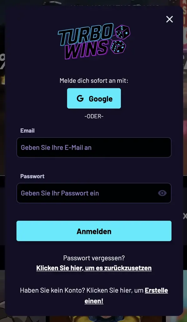 - Vul je e-mailadres in en maak een sterk wachtwoord aan voor je Turbowins account.